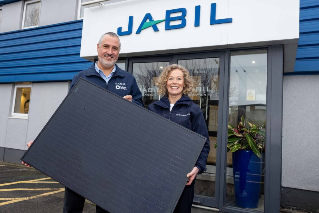 Certa has agreed a Solar as a Service (SaaS) deal with Jabil valued at €1.2 million. The delivery of the solar energy project includes the installation of 3,000 rooftop solar PV panels at Jabil’s premises in Bray, Co. Wicklow. The 1.5-megawatt (MW) solar system will generate 1.3-kilowatt (kWh) units of renewable power annually and will also reduce carbon emissions by 360 tonnes each year. Pictured at the announcement were Migdo Natal, Industrial Engineering & Facilities Manager at Jabil, and Orla Stevens, Managing Director of Certa Ireland.
